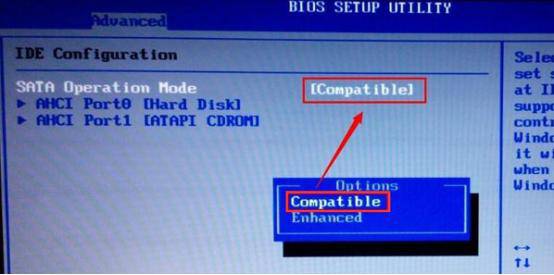 然后,在【IDE Confugyration】界面中,选择【SATA Operation Mode】回车,最后按下【F10】键保存设置即可。