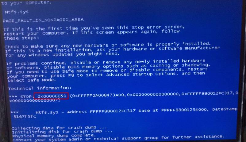 蓝屏代码一:【0x00000050】