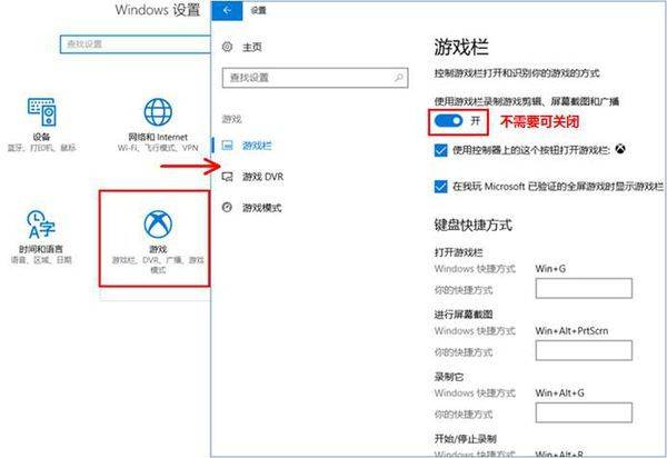 6、若笔记本仅办公不游戏的话,可以右击Windows图标选择【设置】,点击【游戏】并【关闭】游戏栏。