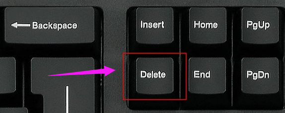 1、首先电脑开机后在出现华硕主板logo的时候马上按下启动热键“Delete”键。