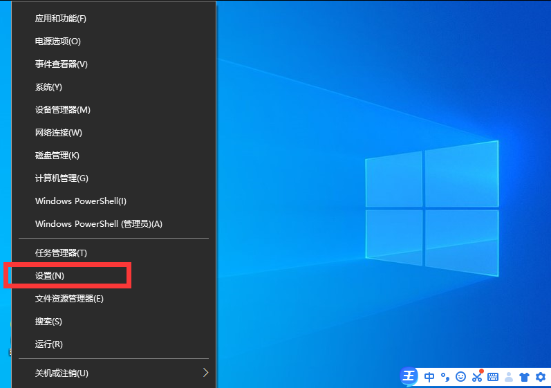 3、如果以上方法没有得到解决的话,右键点击开始菜单栏,点击设置选项。