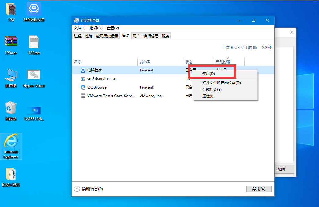 4、在弹出的窗口中,将不需要启动的程序右键点击禁用。