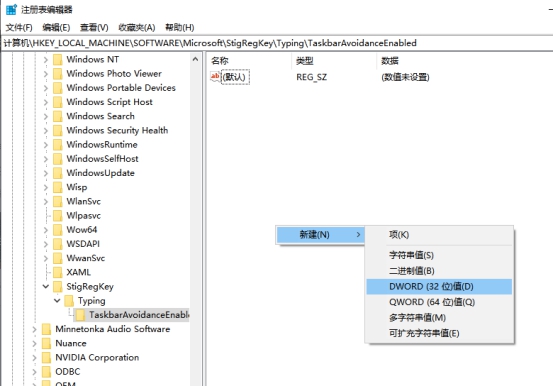 然后再依次找到并打开“StigRegKey”文件夹、“Typing”文件夹和“TaskbarAvoidanceEnabled”文件夹。