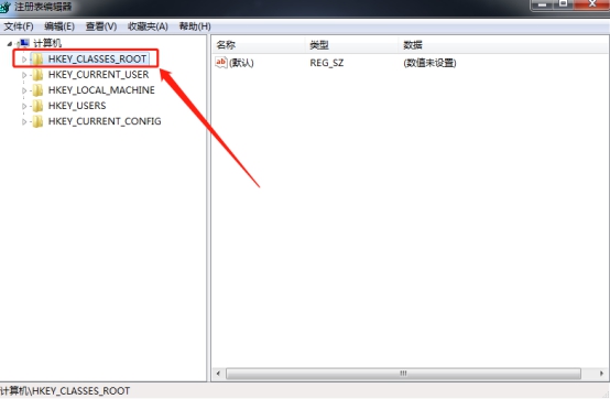 在打开的注册表编辑器页中,左侧菜单打开“HKEY_CLASSES_ROOT”文件夹。