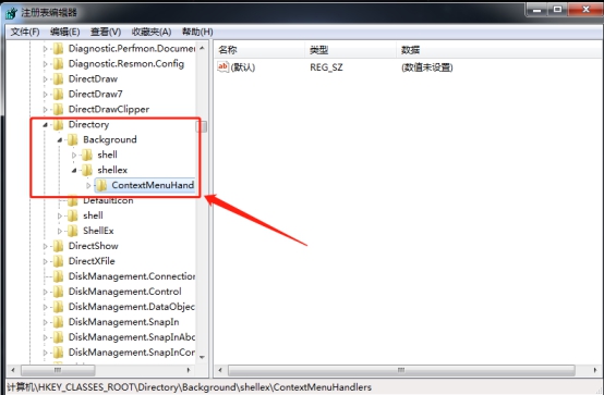 再依次找到并打开“Directory”文件夹、“Background”文件夹、“Shellex”文件夹以及“ContextMenuHandlers”文件夹。