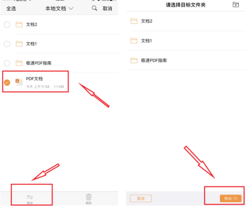 我们可以通过两种方式将文件放入上一步新建的文件夹中,最简单的方法就是直接用手指按住PDF文件后拖移到文件夹中即可。