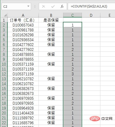 不难看出,结果为1的都是首次出现的订单号,也是我们需要保留的信息,因此用来做条件的时候就用了等于1。