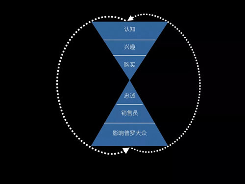 但如果你看得到漏斗下方还有如此大的空间,能把用户变成你的销售,你才知道品牌营销的魅力。