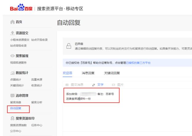 这里再给大家普及一个知识点—利用熊掌号后台自动回复引流。