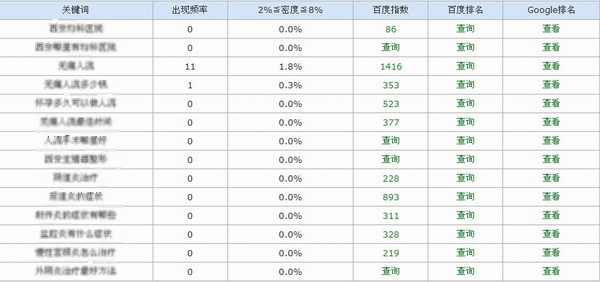 注:上图为站长平台查询的关键词出现数量和密度
