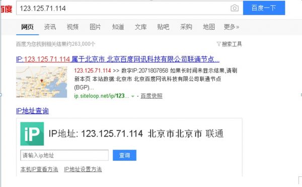 我们进一步研究一下,通过ip地址查询,123.125.71.114属于北京市 联通的ip,220.181.108.101北京市 电信ip,这就能很好的证明了,这两个ip根本没有什么高低权重之说,而是由于百度为了能够更好的抓取到网站内容,通过电信和联通2个ip访问服务器,因为很多站长的服务器线路并不是多线的,导致百度蜘蛛访问网站不顺畅。