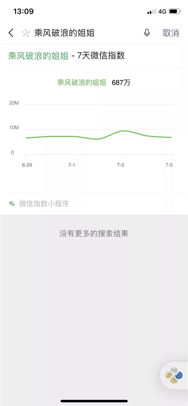 而在搜一搜的微信指数页面里,只可以查看关键词的 7 天内热度。如果想知道更长时间内、更详细的信息,点击便可以进入微信指数小程序。