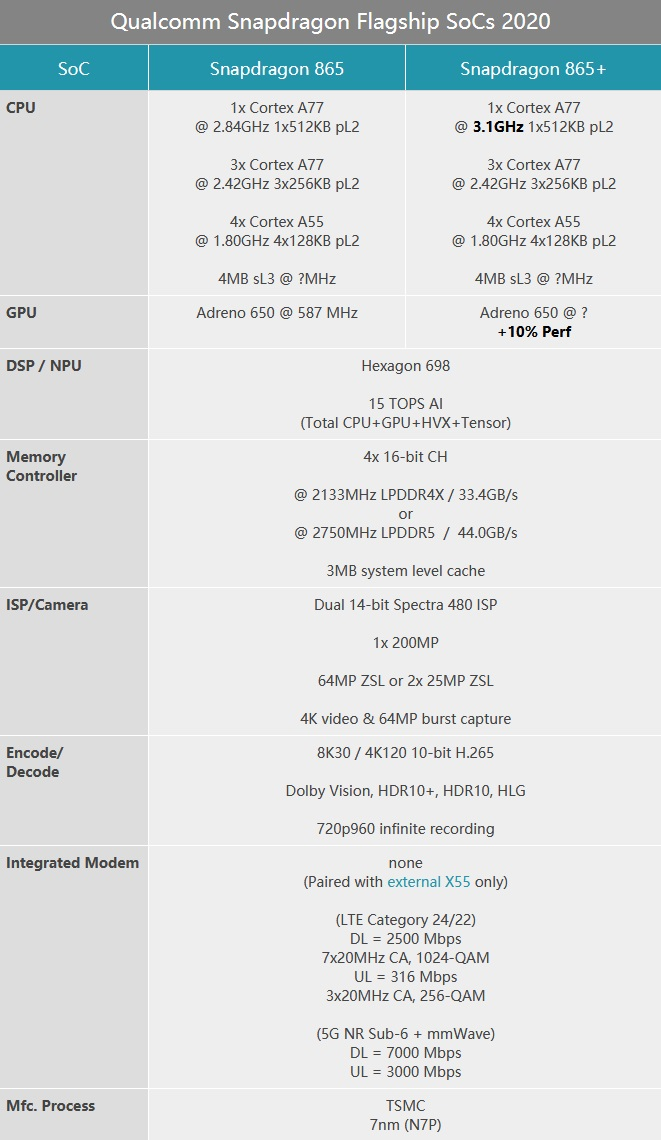 与标准版骁龙 865 相比,骁龙 865 Plus 有三个主要改进: