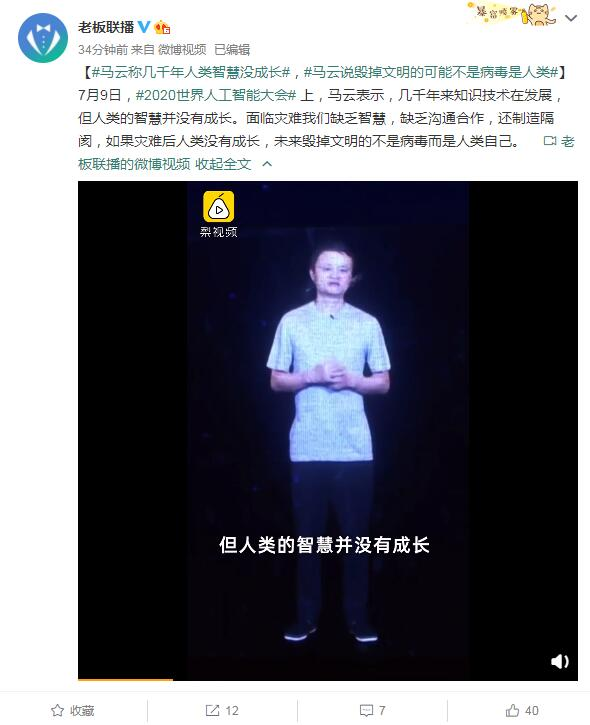 今日,马云以全息影像的方式出席了 2020 世界人工智能大会云端峰会。马云表示,去年大会和今年大会,世界已发生巨变。我们担心的都没有发生,没有担心的却接二连三发生。疫情对世界带来的改变,是来自大自然和未来的信号。