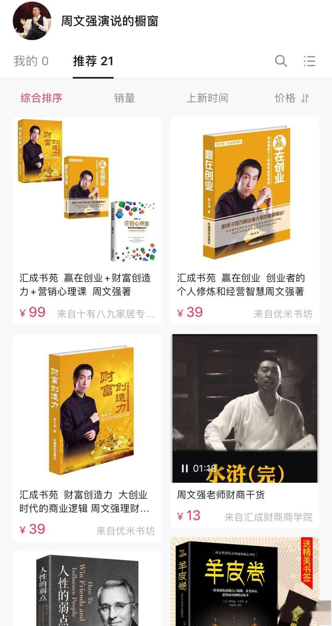此外,周文强还在短视频平台上销售书,其中还包括他自己的一些“成功学”励志书籍。这也是他变现手段的其中之一。