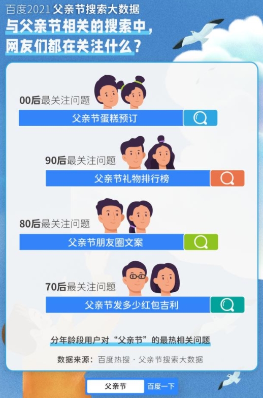 百度发布父亲节搜索大数据:70后倾向于发红包!