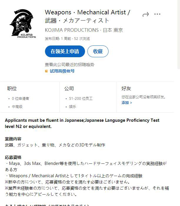 从招聘要求来看,职位与小岛秀夫一贯的风格相同,需要武器、机甲、车辆、小道具的 3D 建模制作方面的人才。此外,官方还招聘网络程序员,以实现游戏中的网络模块。