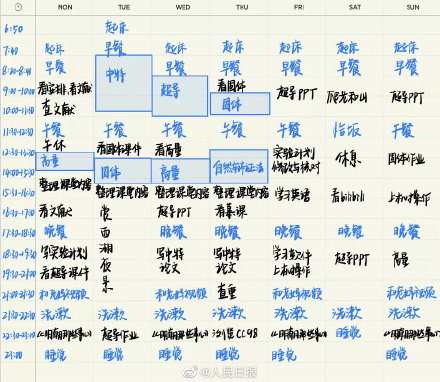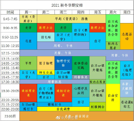 近日,@浙江大学 团委征集的“学霸作息表”刷屏了!这些作息表中有“疫情版”,有同学称“隔离=宅=更加自律”,还有一张浙大考研党作息表。网友:果然是学霸,內驱力好强!