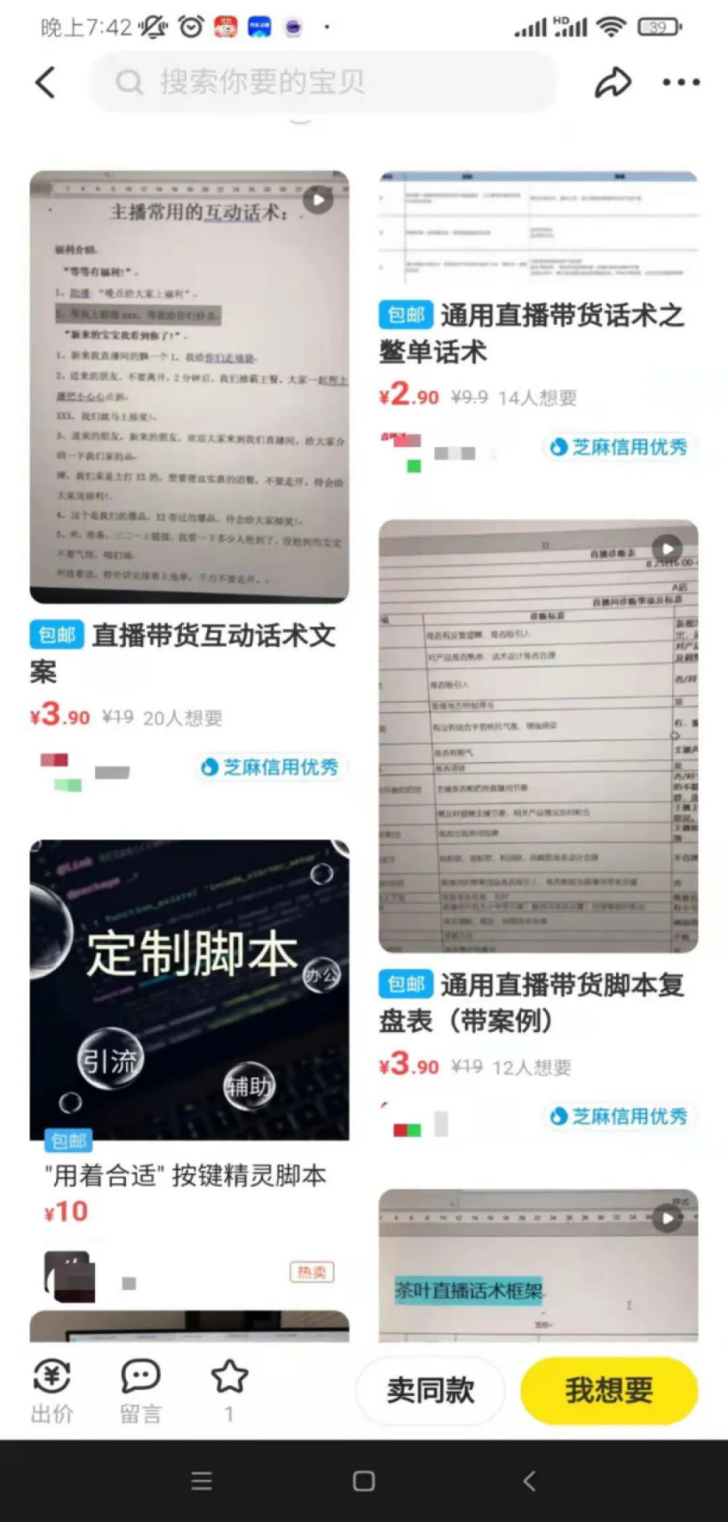 几元钱就能买到网红直播、短视频脚本