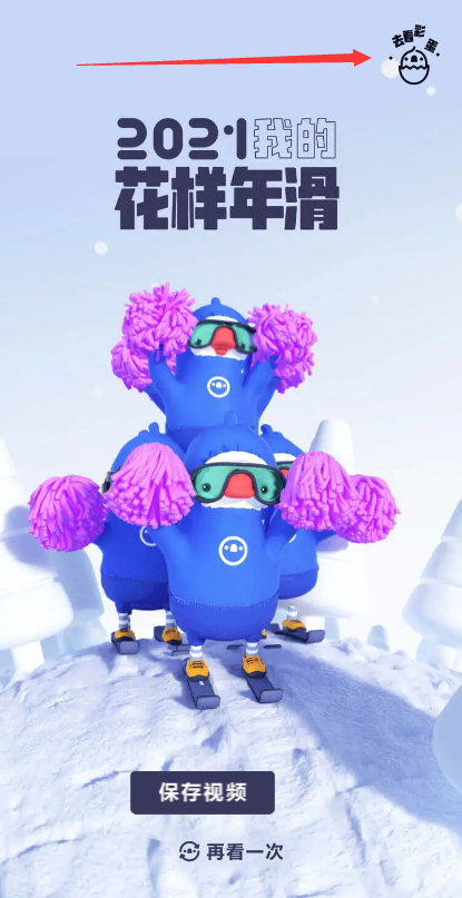 播放完成后,你可以选择重新观看或保存视频,保存后可以自由分享给其他好友。此外,这个页面右上角还有一个隐藏的小彩蛋,点进去是一个腾讯视频 2021 年的大数据汇总,讲述了年轻人和用户的使用习惯和趋势。