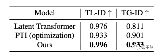 第一个是变年轻、第二、三个都是变老。可以明显看到目前的 SOTA 模型(Latent Transformer)和 PTI 模型中的人脸会“抽巴”,并出现一些伪影,而这个新模型就避开了这些问题。
