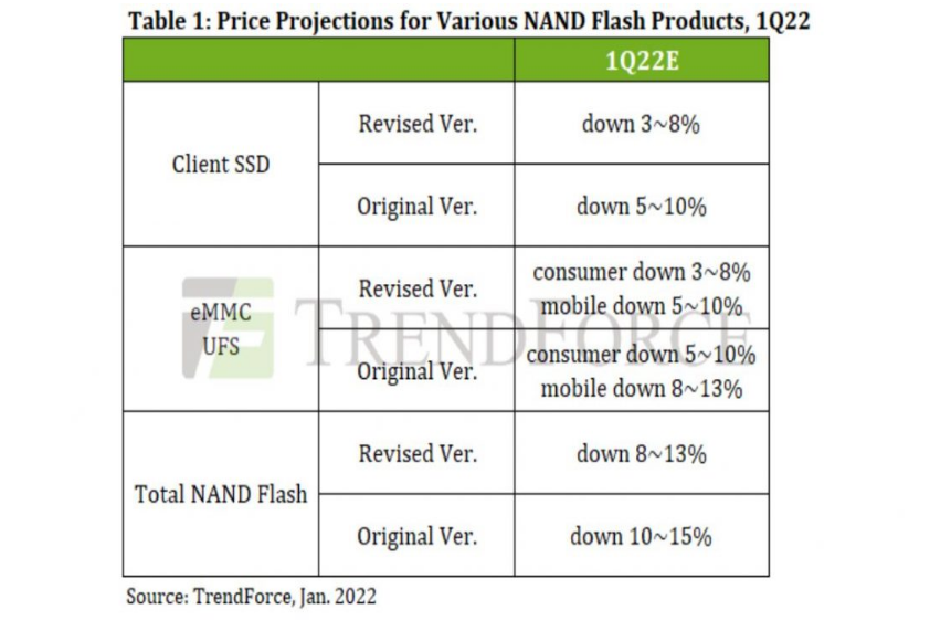 TrendForce 预计 NAND 闪存 Q1 跌价