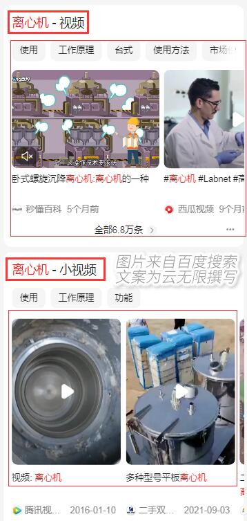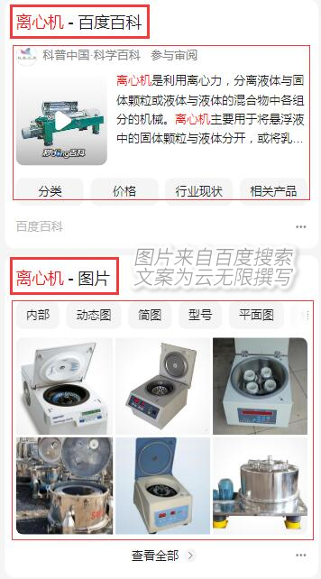 我相信大家对搜索引擎优化已经非常熟悉了,那么你是还在使用传统的SEO技术优化网站呢?你是否知道现在百度搜索展示结果发生了很大的变化呢?我们就用实例为大家说明一下:大家可以打开百度手机APP,搜索“离心机”