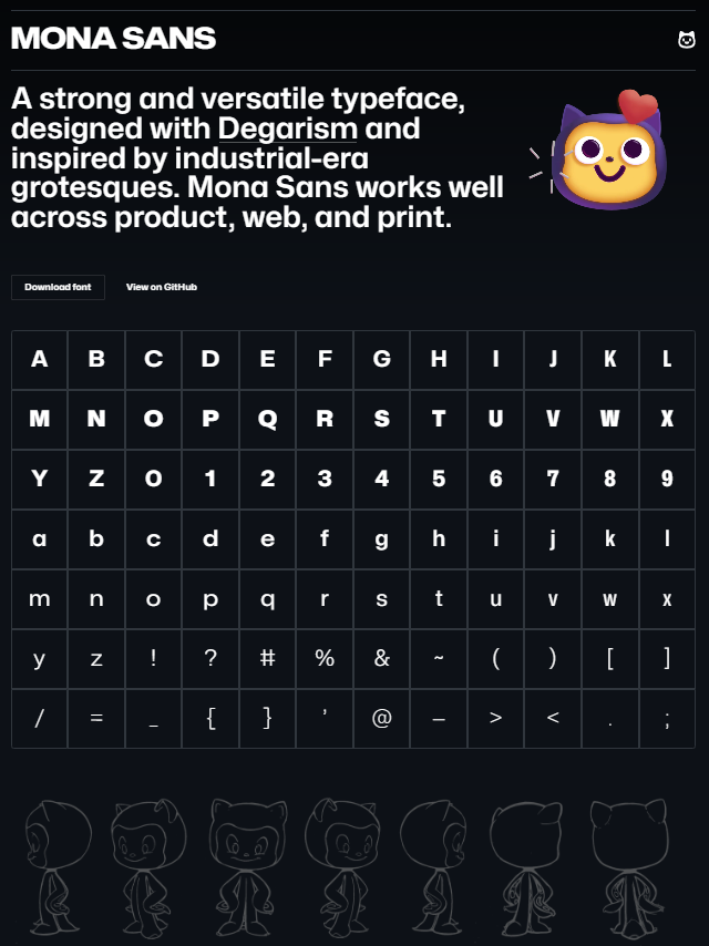 Mona Sans 是一种强大而多功能的字体,采用 Degarism 设计,灵感来自工业时代的怪诞。Mona Sans 字体适用于产品、Web 和打印等方面。
