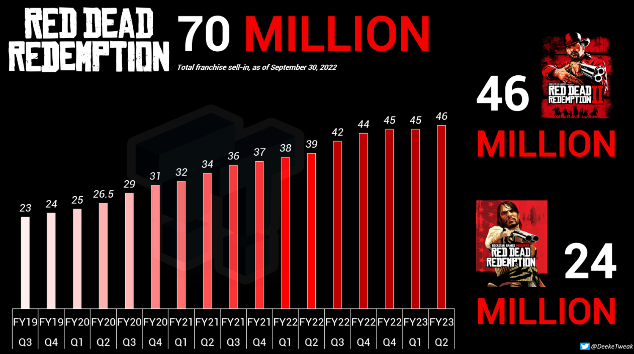 14 日消息,Take-Two Interactive 在其 2023 年第二财季的收益简报中透露,R 星旗下《荒野大镖客》系列游戏在全球已售出超过 7000 万份。
