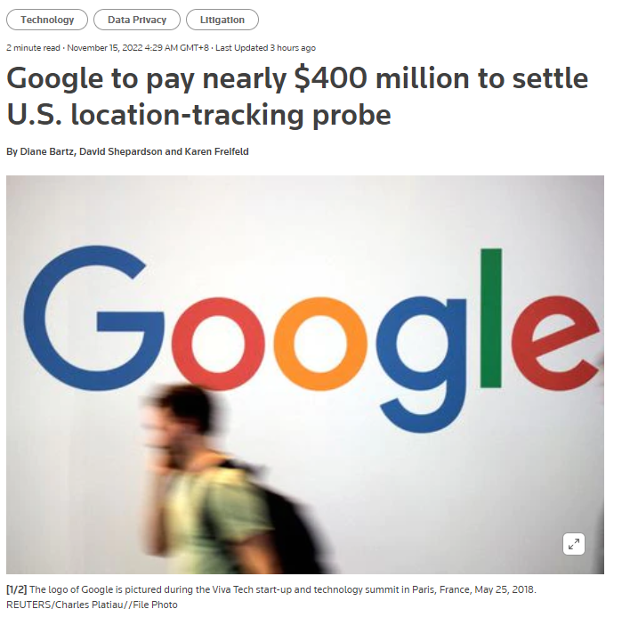 州检察官在 2018 年对一份报告进行了调查,该报告称,即使用户指示谷歌不记录位置数据,谷歌也会记录。调查发现,至少从 2014 年开始,谷歌就误导了消费者关于位置追踪的做法,违反了州消费者保护法。亚利桑那州对谷歌提起了类似的诉讼,并在 2022 年 10 月以 8500 万美元的价格达成和解。