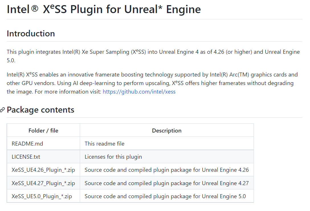 目前 XeSS 插件可适用于 4.26,4.27 和 5.0 版本。这一插件目前只在 Github 上可用,但我们预计它很快就会上架虚幻引擎市场,就像 AMD FSR 和 Nvidia DLSS 一样。