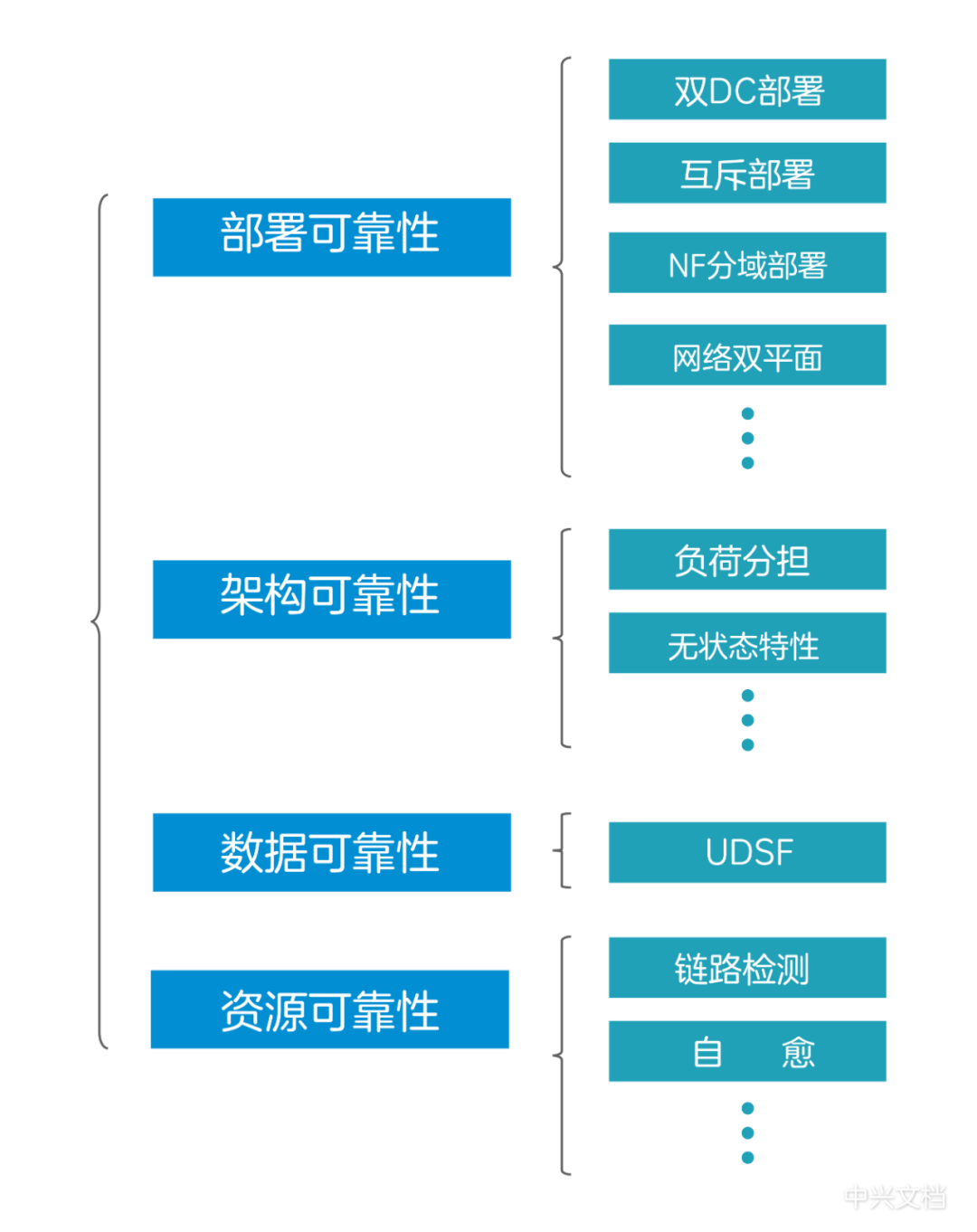 5GC 容灾解决方案支持负荷分担和无状态特性等方式,从而实现架构可靠性。