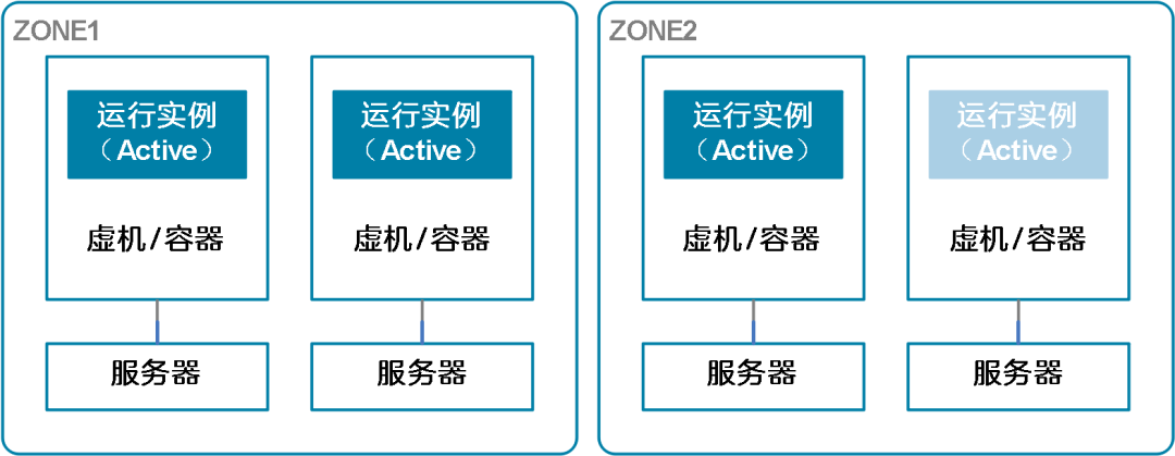 上图是典型的 3+1 冗余方式,当 3 个实例可以满足系统容量的业务处理时,再提供 1 个实例用于冗余。当任何 1 个运行实例故障时,其他 3 个运行实例继续工作,从而保证系统容量及业务处理不受影响。