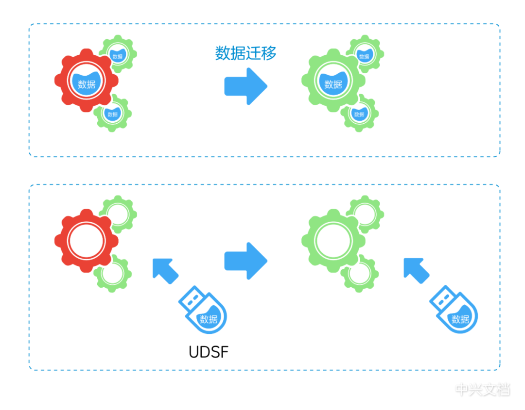 5GC 的 NF 按无状态设计,在当前处理流程完成后,将用户及会话上下文等状态数据保存在 UDSF 中,由 UDSF 对数据进行多副本保存。UDSF 支持 1+1 冗余、双 DC 部署的容灾方式,从而保证数据可靠性。