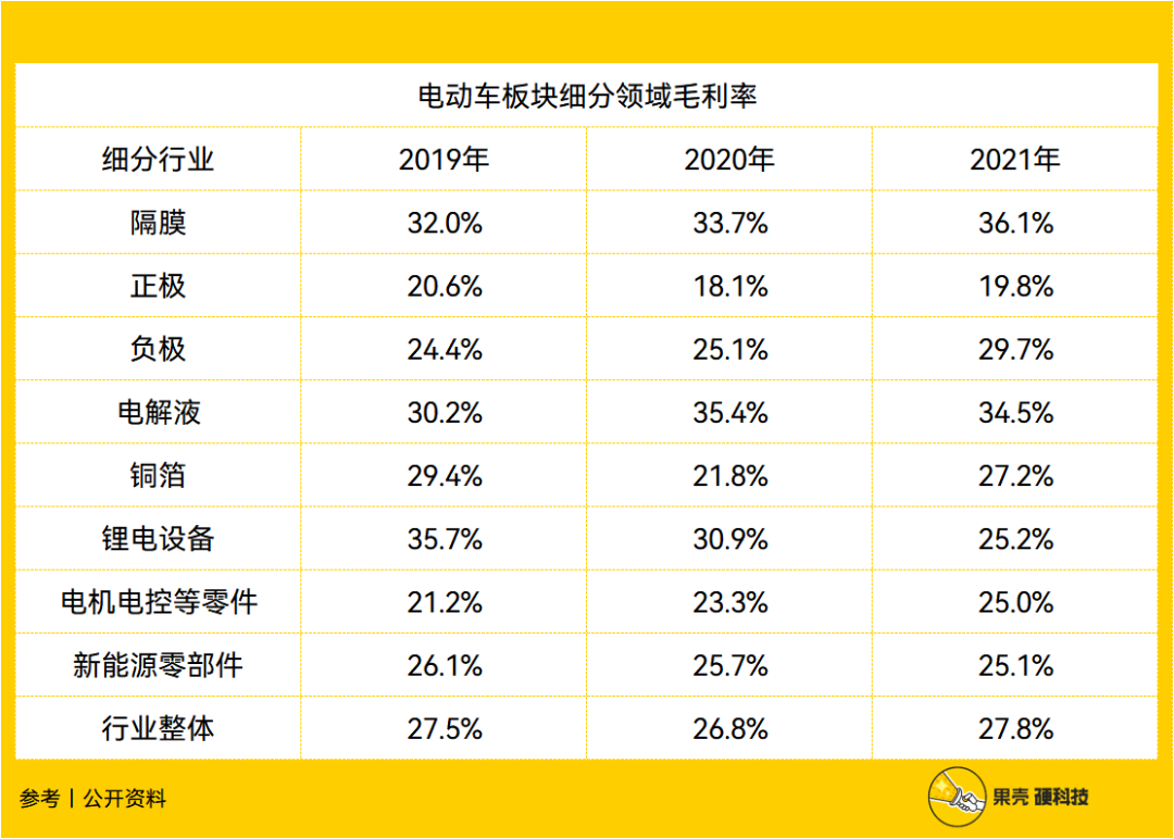 据国金证券统计,2021 年,电动车行业总体平均毛利率为 27.8%,隔膜行业毛利率为 36.1%,显著高于大部分细分赛道 [12]。
