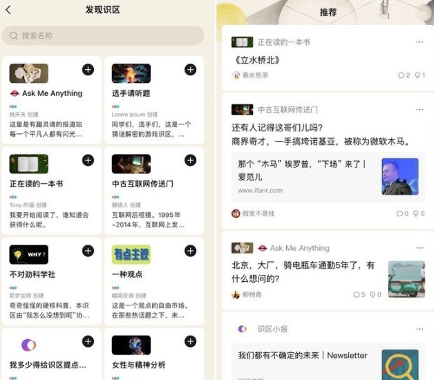 从此前的用户体验来看,识区 App 可以说是“今日头条”的改版,或者说类似“豆瓣小组”,采用 AI 算法推荐,但配置了“区长”参与人工筛选内容,还支持订阅 RSS,不过可能测试运营的效果没有达到官方预期,于是仅半年多就结束了生命。