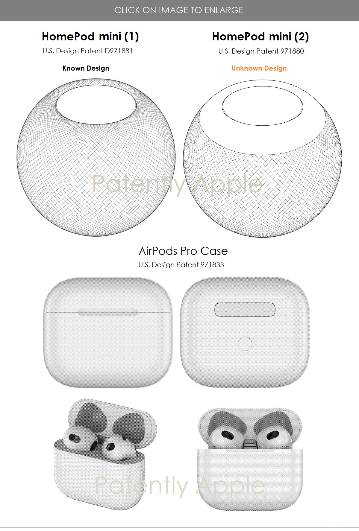 ,苹果今天还获得了关于 AirPods Pro 的三项设计专利和关于 HomePod Mini 的两项设计专利。Apple 的外观设计专利 971880 是一项未知的设计。
