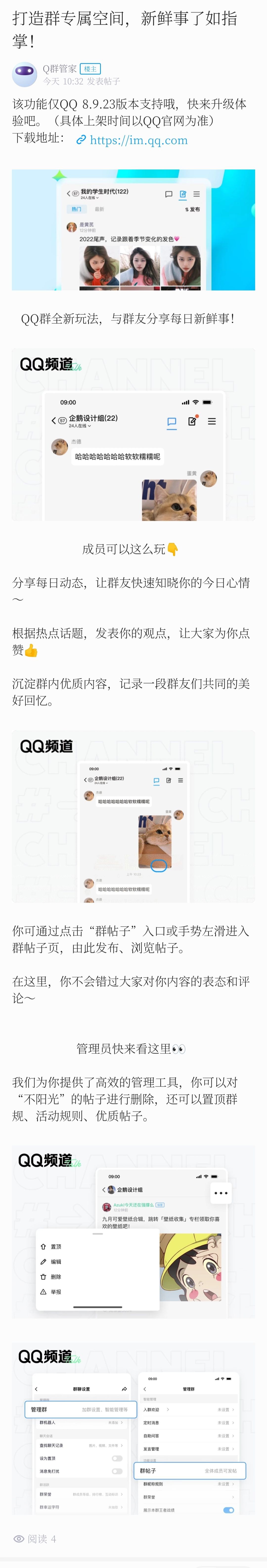 腾讯 QQ 内测“群发帖”功能,打造群专属空间!