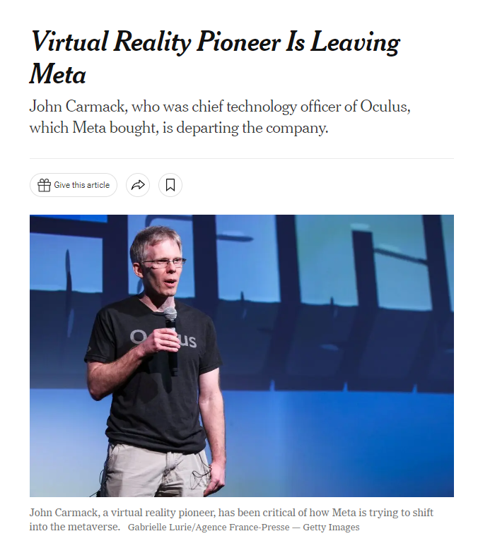 “这对我来说是一种挣扎,”卡马克在本周发表在一个内部论坛上的帖子中写道,“我在这里的最高层有发言权,所以感觉我应该能够推动事情的发展,但显然我的说服力不够。”