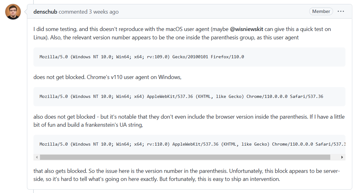 Firefox 火狐浏览器开发者调查后发现,这个问题可能是浏览器的 UA(User Agent)用户代理字符串出现了误读。