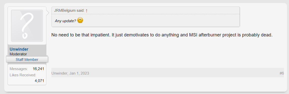 然而,根据开发者的最新消息,MSI Afterburner 项目已被公司半放弃了很长一段时间。