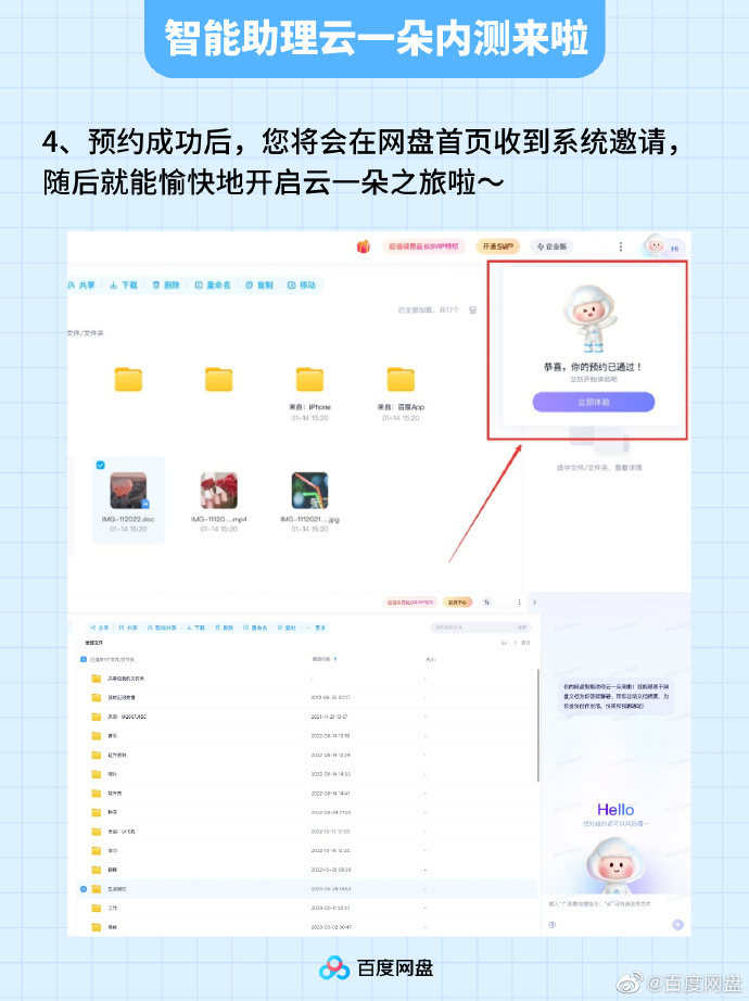 百度网盘“云一朵”智能助理内测:基于文心大模型