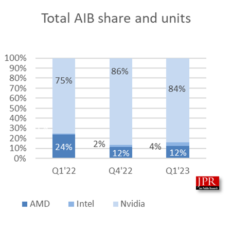 AMD 本季度总的桌面显卡 AIB 单位出货量下降了 7.5%。