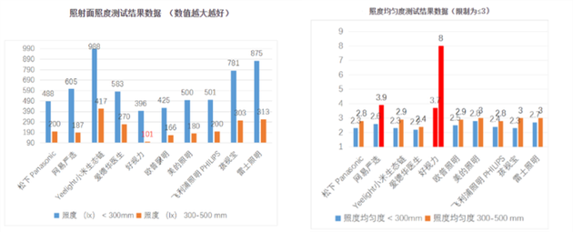 好视力和网易严选两款产品未达到A级要求,网易严选这款护眼灯在照度均匀度(300-500mm)测试中超标,好视力产品在照度均匀度测试中超标严重,且照度测试表现最差。因此求真君表示这两款产品不建议购买。