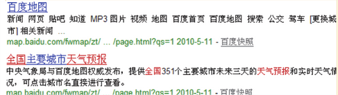 例子中的网页,提供全国主要城市的天气预报服务,第一个结果中,使用了百度地图默认的title,用户在搜索结果无法判断这个网站提供的内容是什么,也就不会点击这个结果,第二个结果中,title很明确的写明了所提供的内容,用户判断起来比较容易,选择这个结果的可能性比较大。