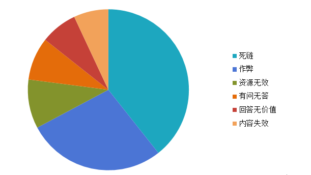 质量差网页中除了低质网页外,无任何质量可言的垃圾页面的问题分布如下图所示: