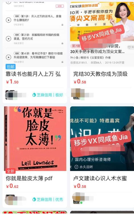 大家看第二个图与第四个图,外面售价几百几千的虚拟资料,几毛钱就能买到,对于想在闲鱼捡漏的人来说,封面相当诱人。