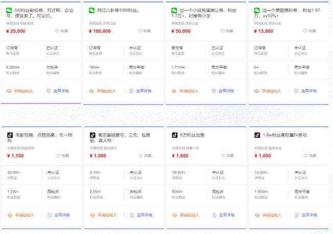 抖音0.03/单粉 公众号0.5-2元/单粉不等。