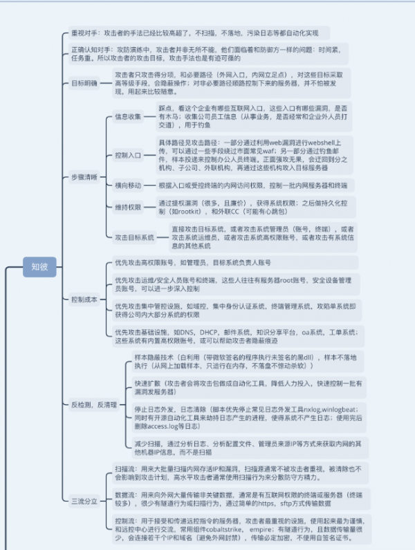攻击者一般:目标明确、步骤清晰、控制成本、反检测,反清理、三流分立。