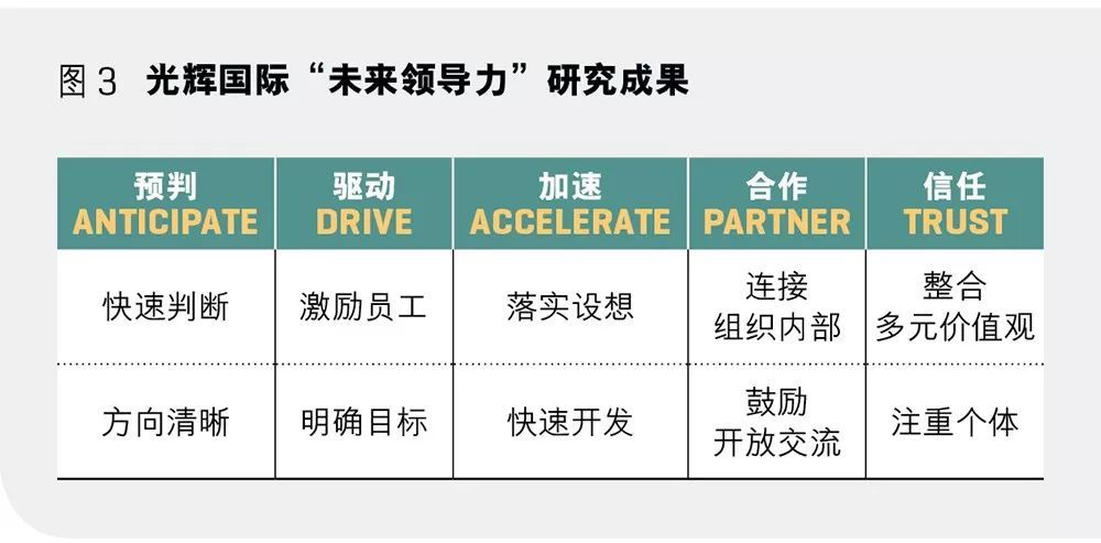 有一些是全球的企业领导者面向未来共同的挑战。我们在对全球15万名领导者的数据进行研究分析的基础上,发现了未来世界所需的企业领导者,必须具备的五维能力素质:预判(Anticipate)、驱动(Drive)、加速(Accelerate)、合作(Participate)和信任(Trust),联合起来被称为ADAPT。在受访的795名全球投资者代表中,82%承认他们投资的企业正在面临颠覆性挑战,67%的投资者认为目前的企业领导者迫于短期压力致使企业无法创新、变革、进行数字化转型。面向未来,全球的商业领导者们几乎站在同一起跑线上,中国企业的领导者们不应妄自菲薄,而是需要在以上这些方面不断自省与磨砺。
